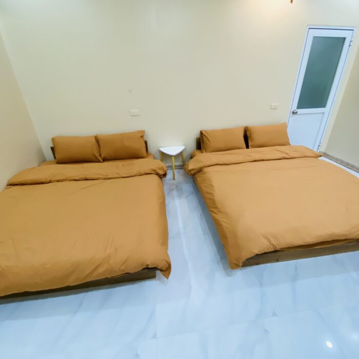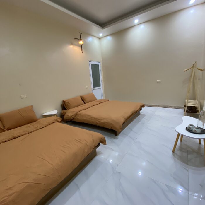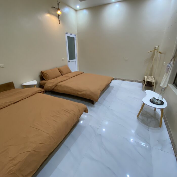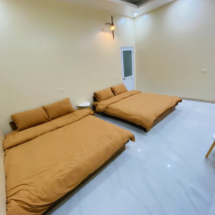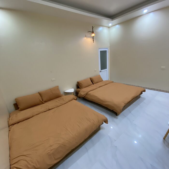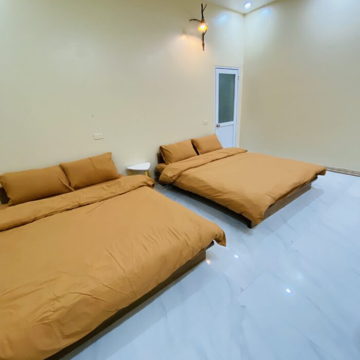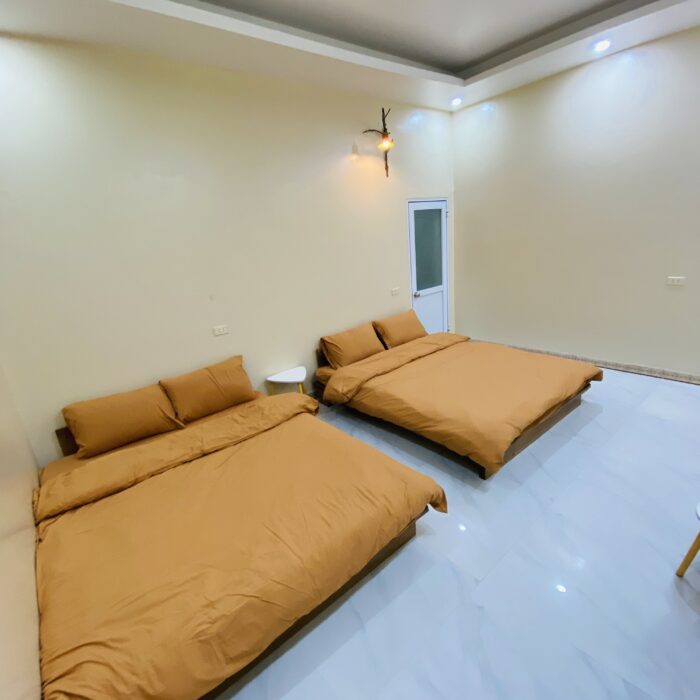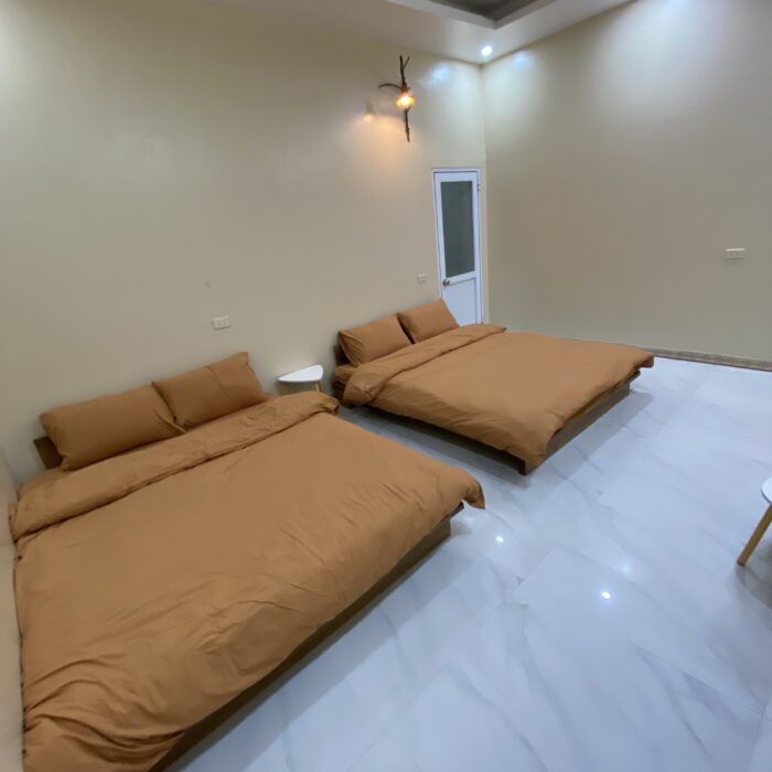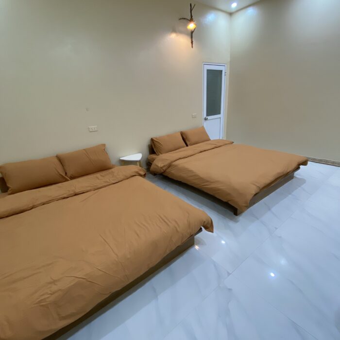 - 2 giường lớn 1.6x2m, tiêu chuẩn 4 người lớn.