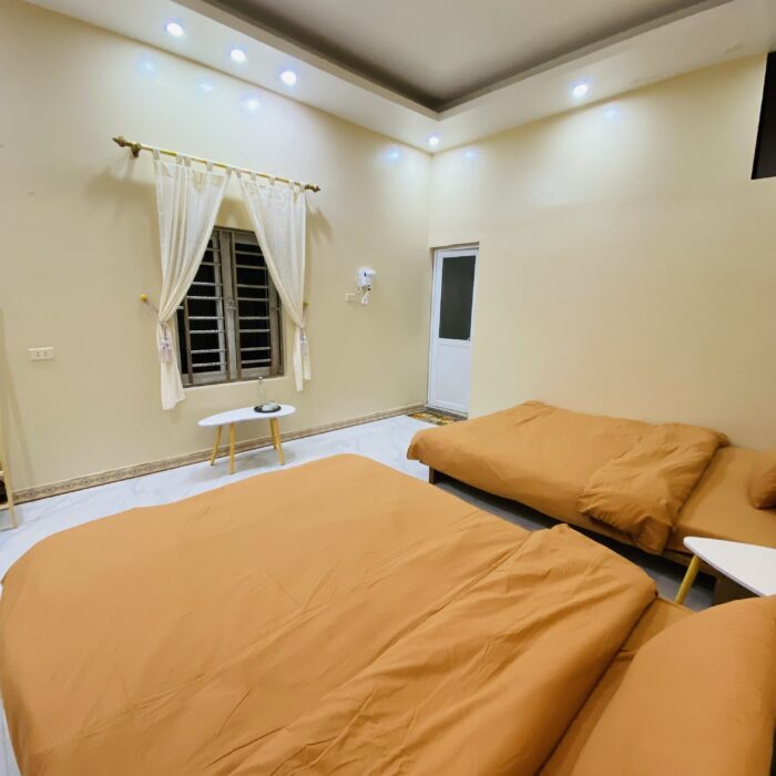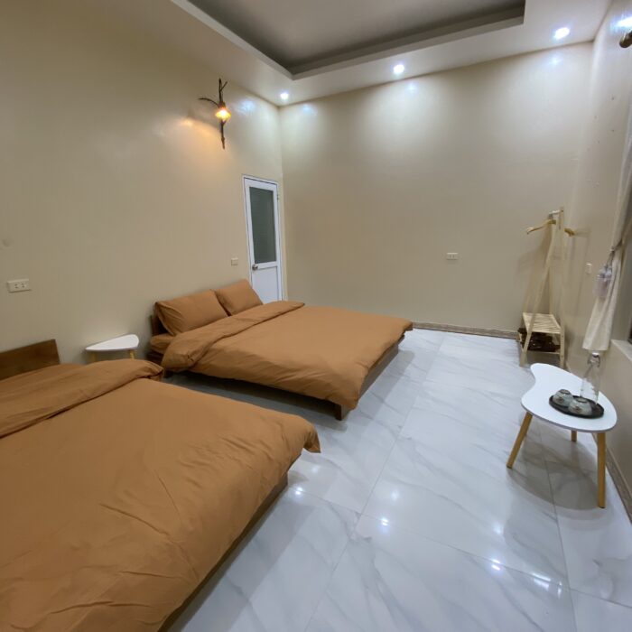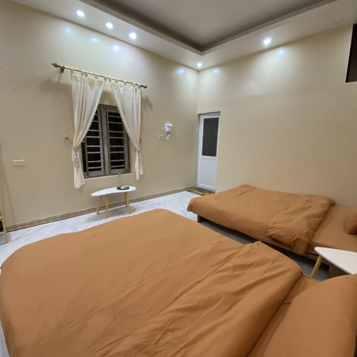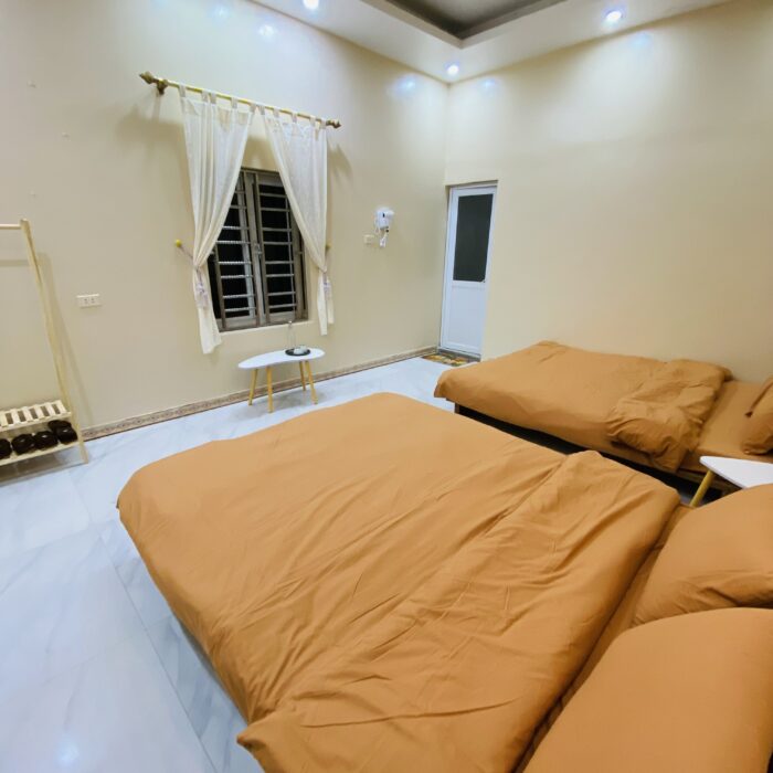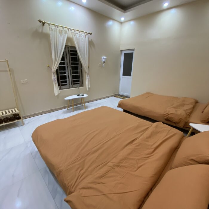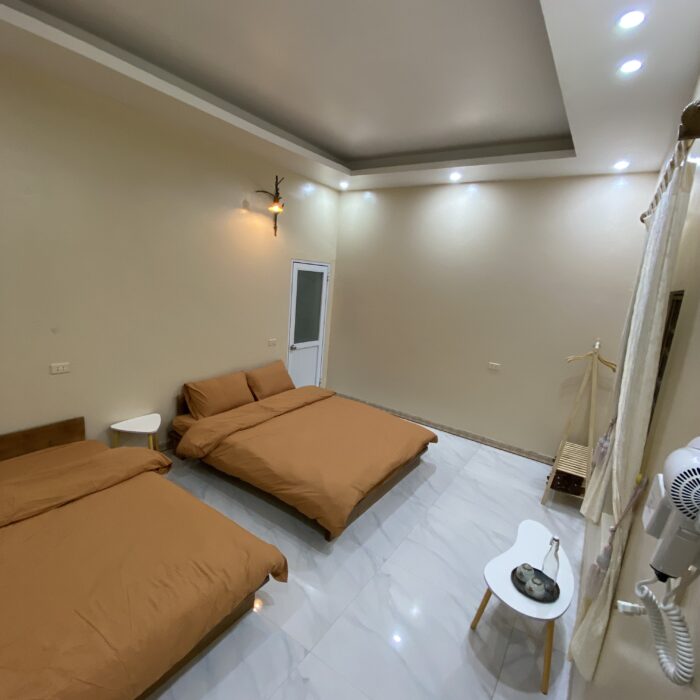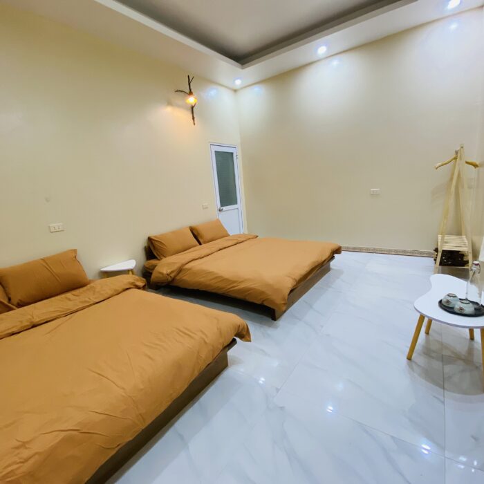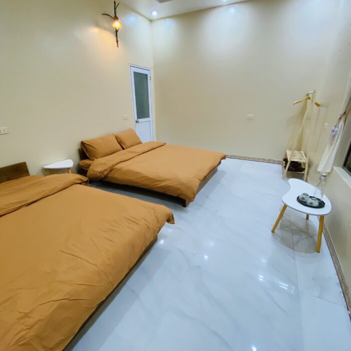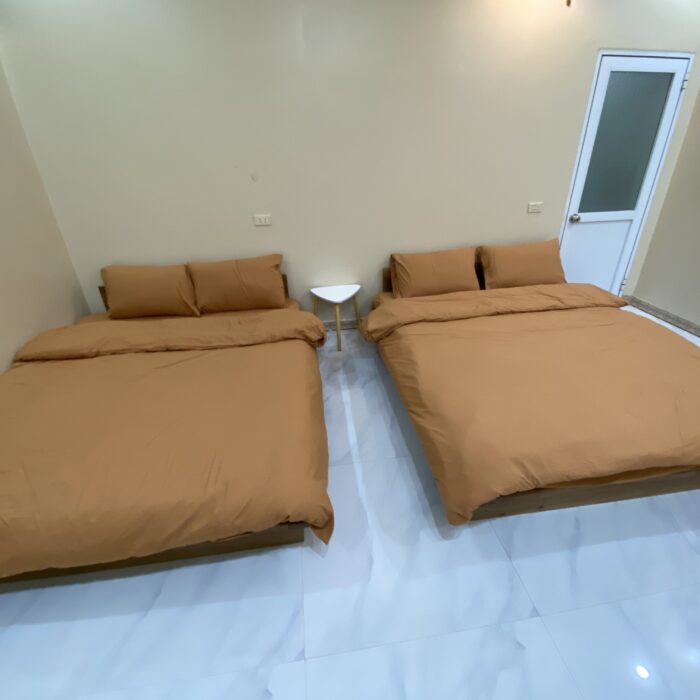 - 2 giường lớn 1.6x2m, tiêu chuẩn 4 người lớn.