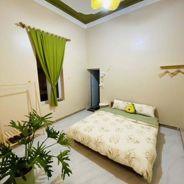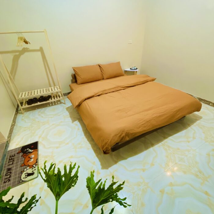 - 1 giường lớn 1.6x2m, tiêu chuẩn 2 người lớn.